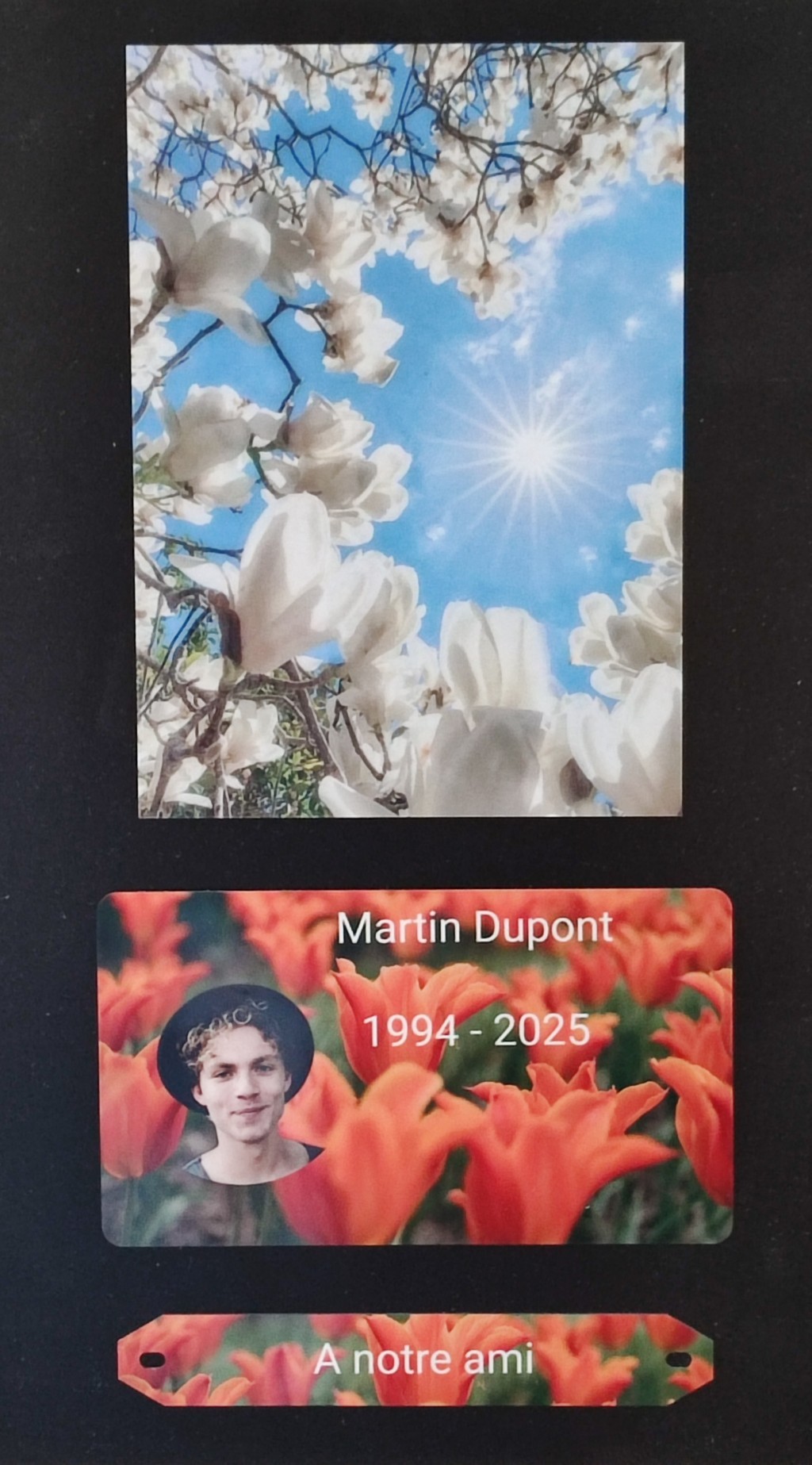 Choisissez parmi différents matériaux, formes et finitions, puis personnalisez-les avec le texte, le motif ou le visuel de votre choix. Notre équipe vous accompagne dans la conception d’une pièce sur mesure, alliant esthétique et longévité.